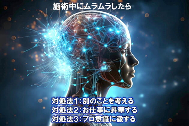 では、施術中にムラムラしたらどうすればいいのか、対処法を提案します。