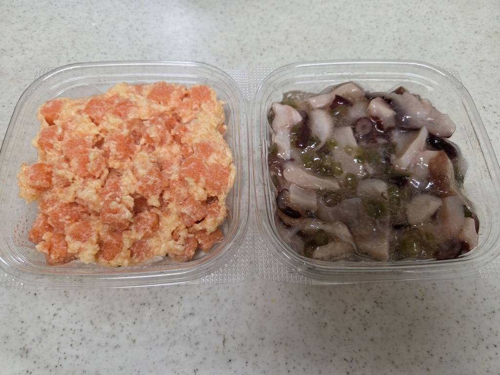 ▼これは海宝(かいほう)さんの“明太サラダ”と“たこわさび”✨こちらの“たこわさび”はほぼ毎年食べているのですが、柔らかいのに歯ごたえがあって(?)、辛味もちょうど良くて大好きです💕新潟のお店ですが催事でちょこちょこ関東に来ているみたいです🤗 ※私は酒飲みではありません(笑)※